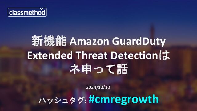 2024/12/10 新機能 Amazon GuardDuty Extended Threat Detectionは ネ申って話 ハッシュタグ: #cmregrowth