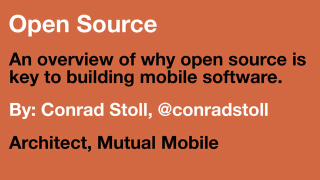 to building mobile software. By: Conrad Stoll, @conradstoll Architect, Mutual Mobile