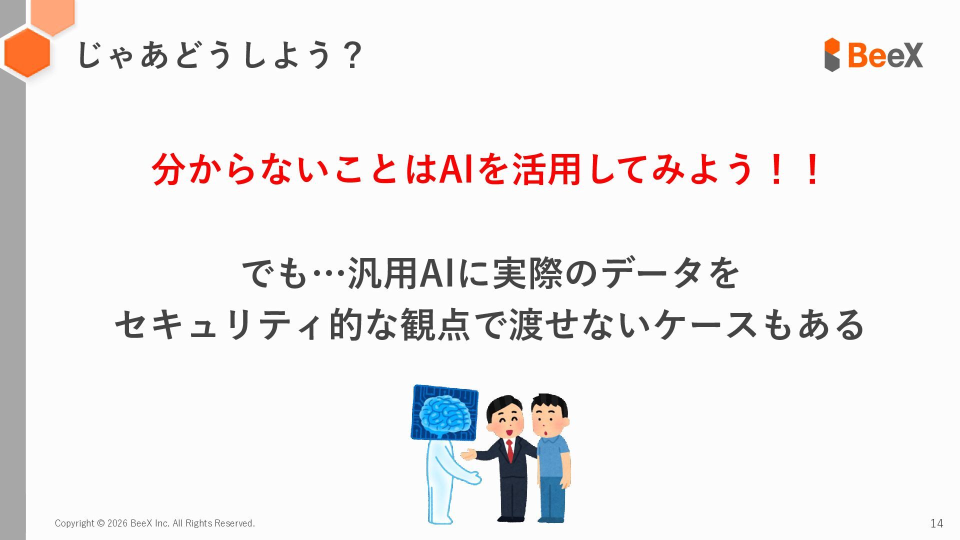 13. Copyright © 2026 BeeX Inc. All Rights Reserved. 14 じゃあどうしよう?