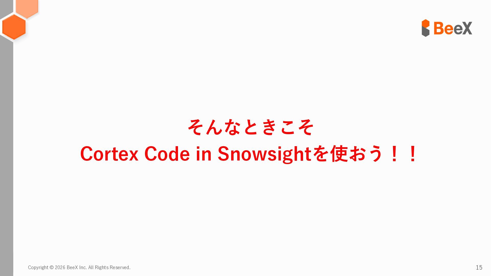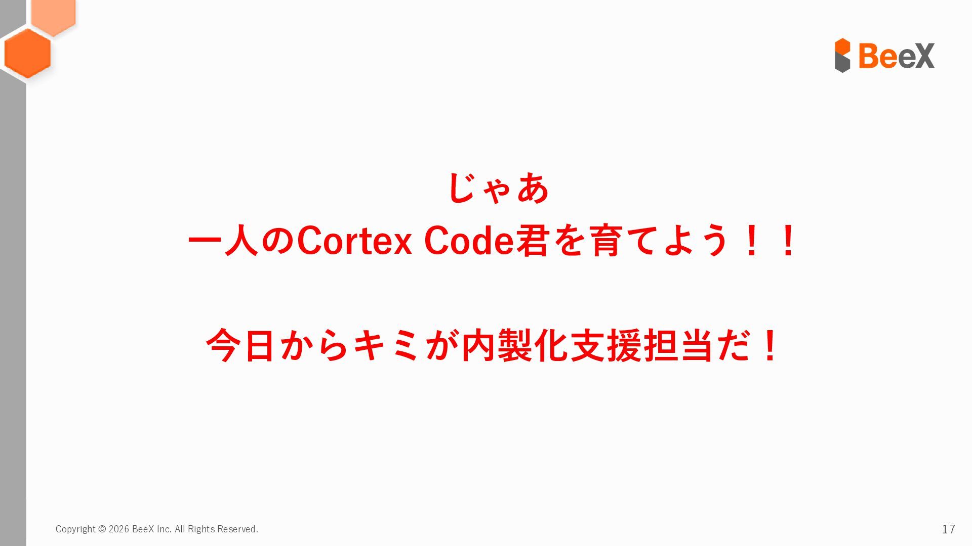 15. Copyright © 2026 BeeX Inc. All Rights Reserved. 17 じゃあ