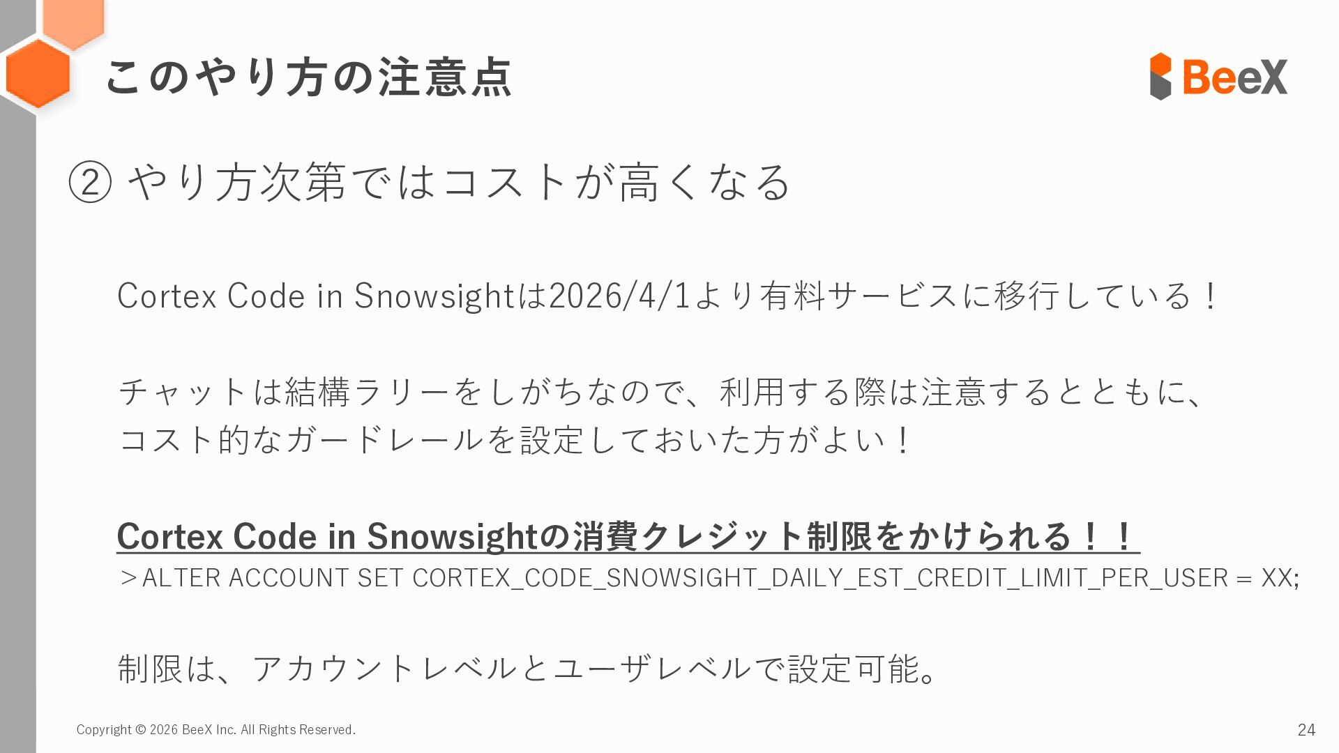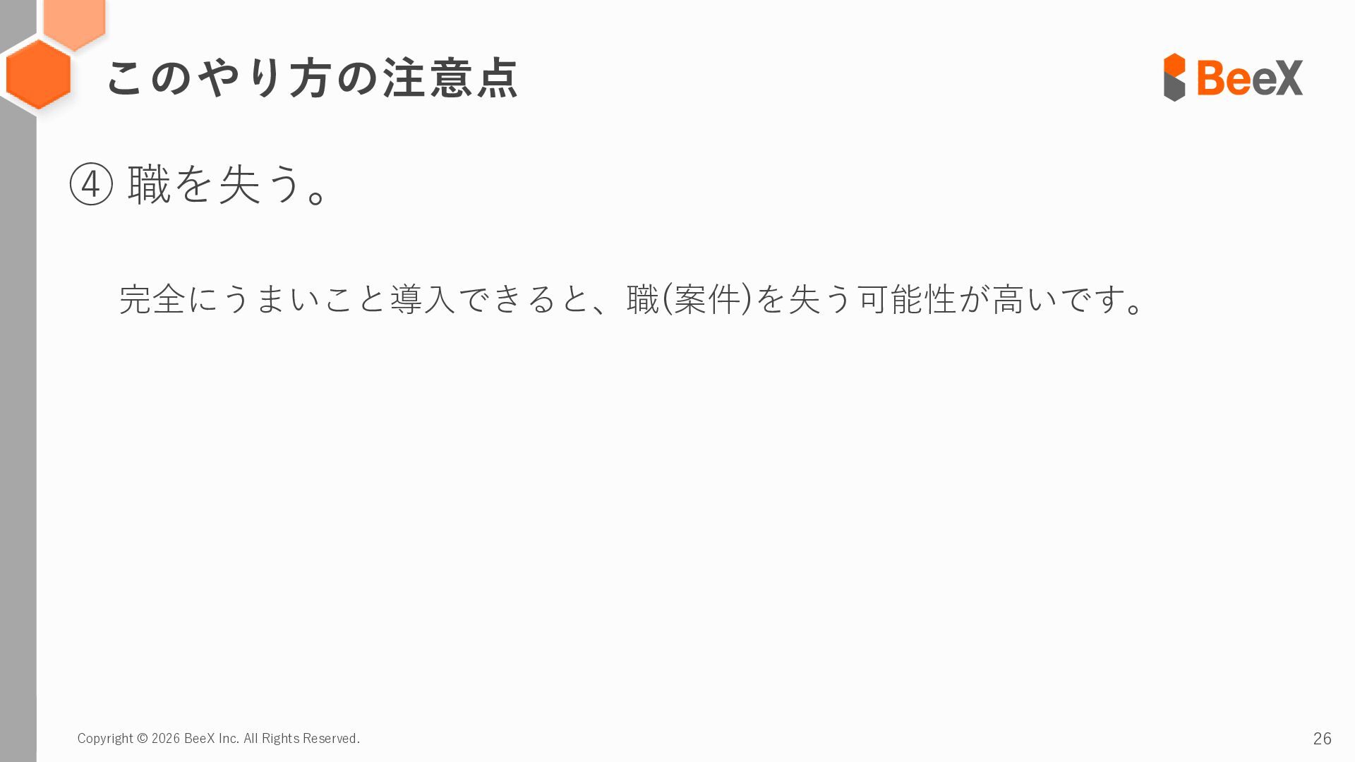 24. Copyright © 2026 BeeX Inc. All Rights Reserved. 26 このやり方の注意点