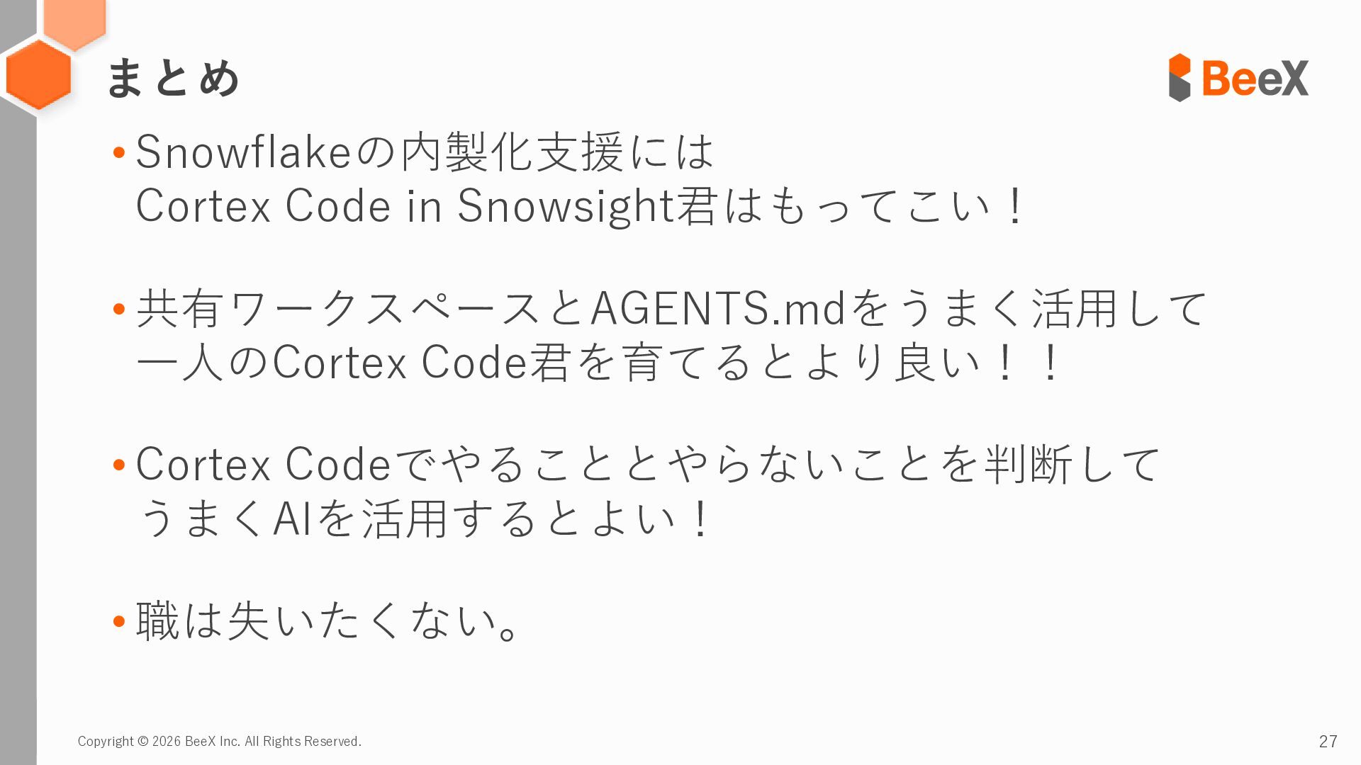 25. Copyright © 2026 BeeX Inc. All Rights Reserved. 27 まとめ