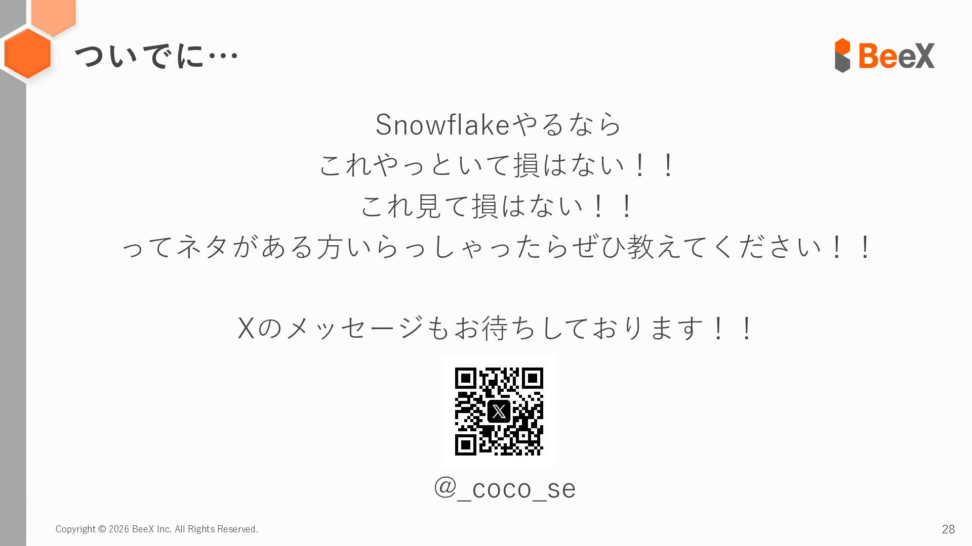 26. Copyright © 2026 BeeX Inc. All Rights Reserved. 28 ついでに…