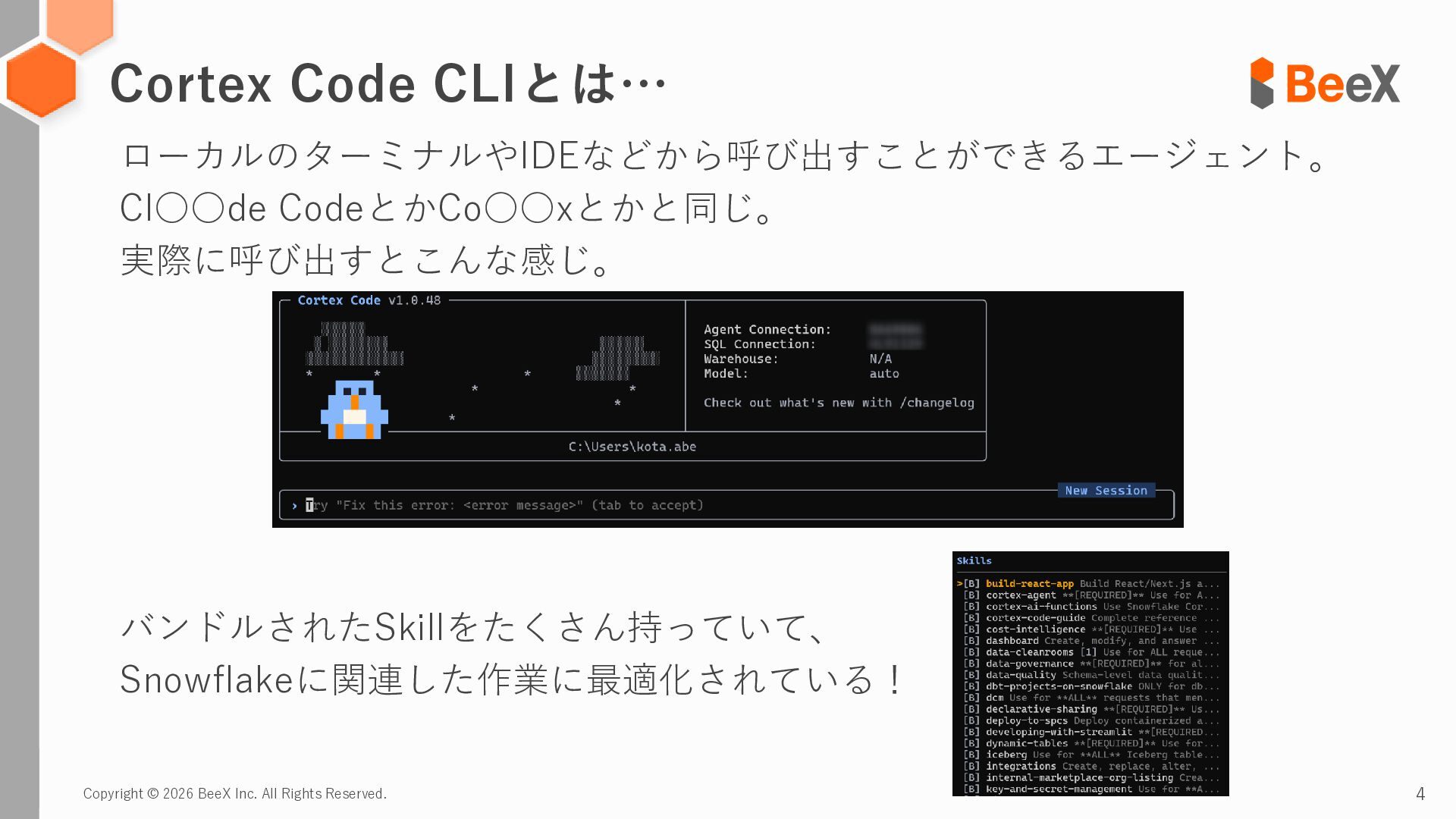 1. Copyright © 2026 BeeX Inc. All Rights Reserved. Cortex Code君、