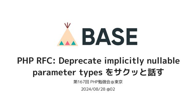 parameter types 意訳「引数の型指定のうち、暗黙的な null 許容を非推奨にする」 // 8.3以前 function foo(int $var = null) {...} // OK // 8.4 // Deprecated: Implicitly marking parameter $var as nullable is deprecated, the explicit nullable type must be used instead function foo(int $var = null) {...}