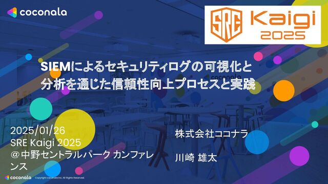 Copyright coconala Inc. All Rights Reserved. SIEMによるセキュリティログの可視化と 分析を通じた信頼性向上プロセスと実践 株式会社ココナラ 川崎