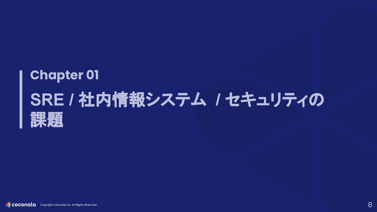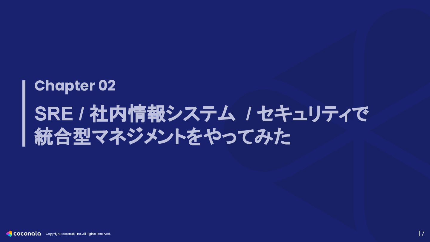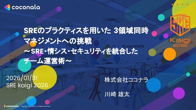 Copyright coconala Inc. All Rights Reserved. SREのプラクティスを用いた 3領域同時 マネジメントへの挑戦 〜SRE・情シス・セキュリティを統合した