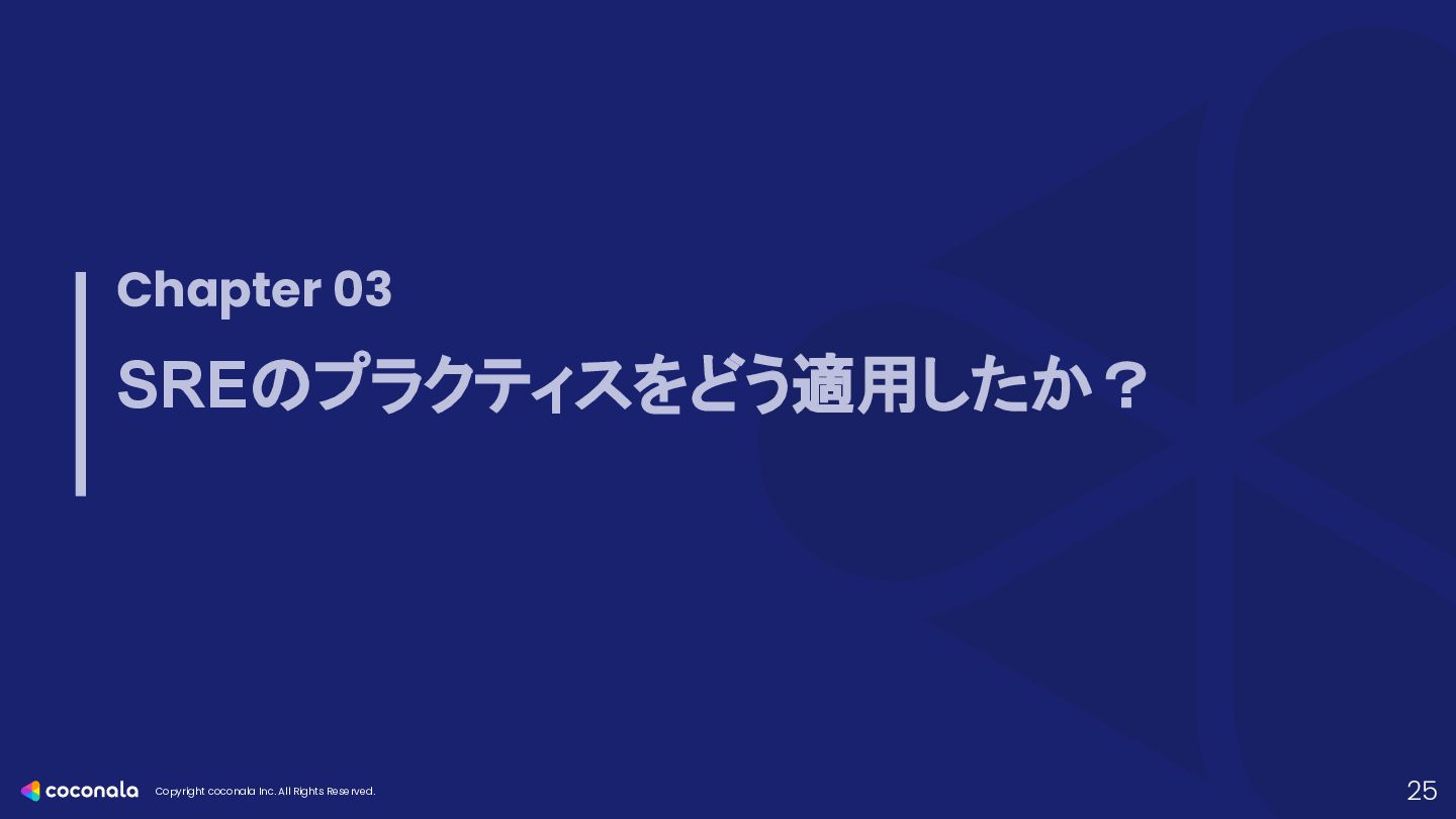 Copyright coconala Inc. All Rights Reserved. SREのプラクティスをどう適用したか? Chapter 03 25