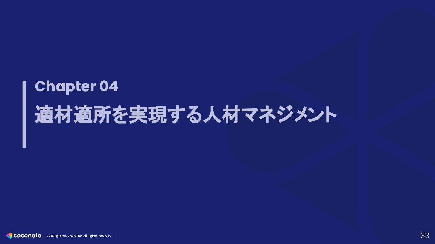 Copyright coconala Inc. All Rights Reserved. 適材適所を実現する人材マネジメント Chapter 04 33