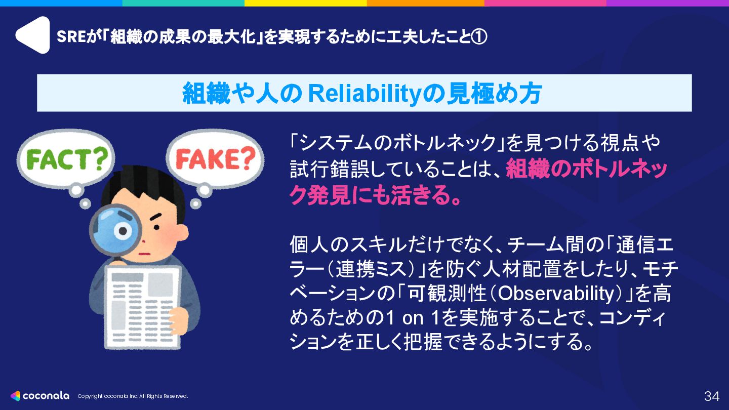 Copyright coconala Inc. All Rights Reserved. SREが「組織の成果の最大化」を実現するために工夫したこと① 34 組織や人の Reliabilityの見極め方
