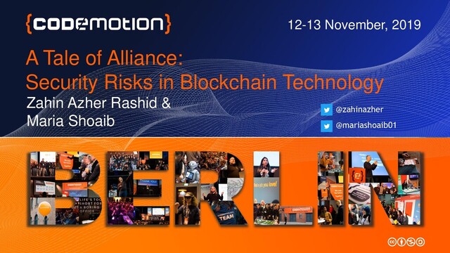 Security and Automation, Web Development, Cloud and Machine Learning, 5G Zahin Azher Rashid @zahinazher Software Engineer at Ericsson in Stockholm, Sweden Earned Dual Degree in Cloud Computing and Entrepreneurship TU Berlin and KTH Royal Institute of Technology Codemotion Berlin 2019 | @zahinazher | @mariashoaib01 | 13/11/2019 2