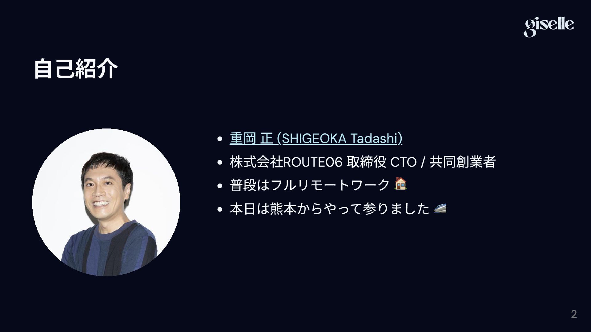 1. 自己紹介 重岡 正 (SHIGEOKA Tadashi) 株式会社ROUTE06 取締役 CTO / 共同創業者