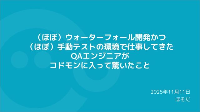 2025年11月11日 ほそだ (ほぼ)ウォーターフォール開発かつ (ほぼ)手動テストの環境で仕事してきた QAエンジニアが コドモンに入って驚いたこと