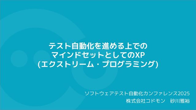 テスト自動化を進める上での マインドセットとしてのXP (エクストリーム・プログラミング) ソフトウェアテスト自動化カンファレンス2025 株式会社コドモン 砂川雅裕