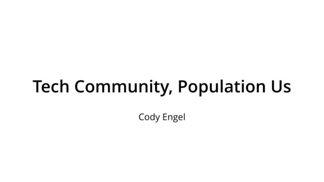 This presentation goes through the current state of the Chicago tech community and goes to the ideal state that Cody has envisioned. Along the way we talk about different ways everyone can contribute to the community in their own way.
