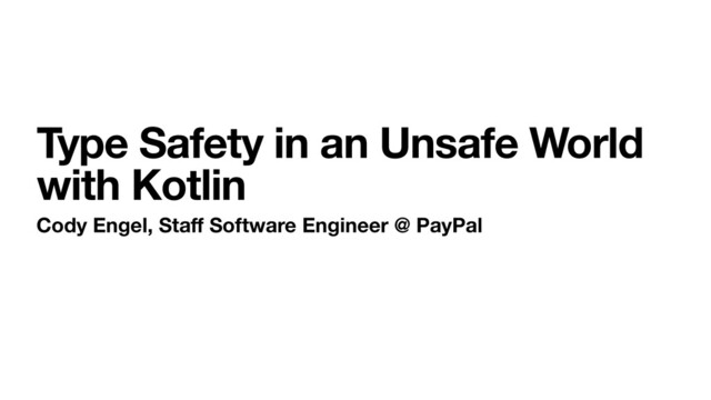 Type Safety in an Unsafe World with Kotlin Cody Engel,