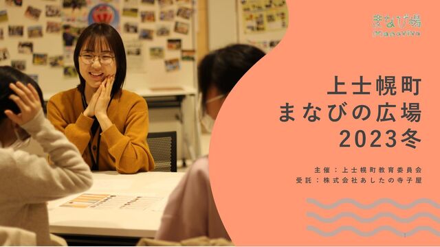 黙々と勉強したり、分からないところを大学生や 塾講師経験のある社会人に聞いたりしながら、 自分のペースで勉強を進めました。 学習サポート 02 01 目標設定と振り返り 大学生との対話 ワークショップ・レシピ まなびの広場で行ったこと 02 お金をもっと知ろう! 〜資産やりくりゲーム〜 年納め!上士幌高校生企画「モルック大会」 探究授業!「橋」 「生きるのにどれくらいのお金がいるんだろう?」 「やりたいことにお金が必要なときどんな手段が あるんだろう?」お金のゲームで遊びながら、お金 や社会について考えてみよう。 フィンランド発祥のゲーム「モルック」って知ってる? 今年もあと僅か、上士幌高校 生徒会のみんなと一緒に ワイワイ遊ぼう! かつて 鉄道輸送の要であったタウシュベツ川橋梁は どんな橋?丈夫な橋に欠かせないことはどんなこと? 実際に作って答えを探そう!このワークショップは、 小学生から高校生まで皆が参加できるよ。 4 ふり返りワークショップ 「まなび場びほろ」で過ごしたこれまでの4日間を ふり返ってみよう!