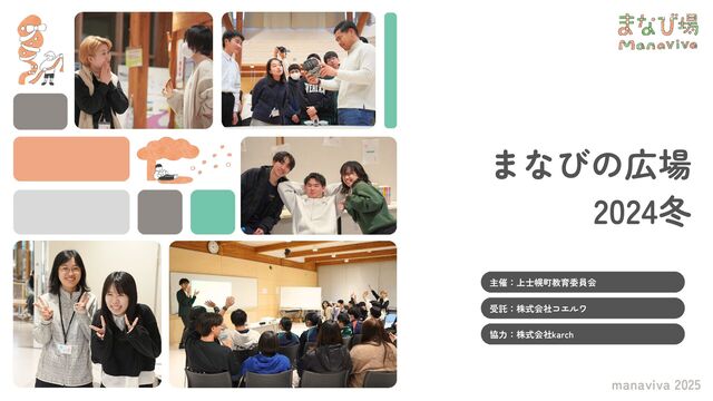 らしい場所だと思いました。貴重な機会をいただきあり がとうございました。(高3女子) 学びの広場では、ただ単に"世界が広がった"だけでなく、"世界の広げ方"を教えて くれました。いろんな人と出会い、いろんな価値観、考え方を知って自分の世界 を知っていきたいと思います。これからは自分も人に”気づく楽しさ”を教えられ るようになります!!(高3男子) 進学のことについて相談に乗ってくれて、色んな選択肢があることが分かった。 勉強のこと以外にも軽い雑談など沢山できて楽しかった(高1女子) 答えのない問いについて考える話は、新しい考え方などを知れて楽しかったで す。(高1男子) manaviva 2025 自信がないことは悪いことだと考えていた。自信を持つんじゃなくて出そうと思 う(高3男子)