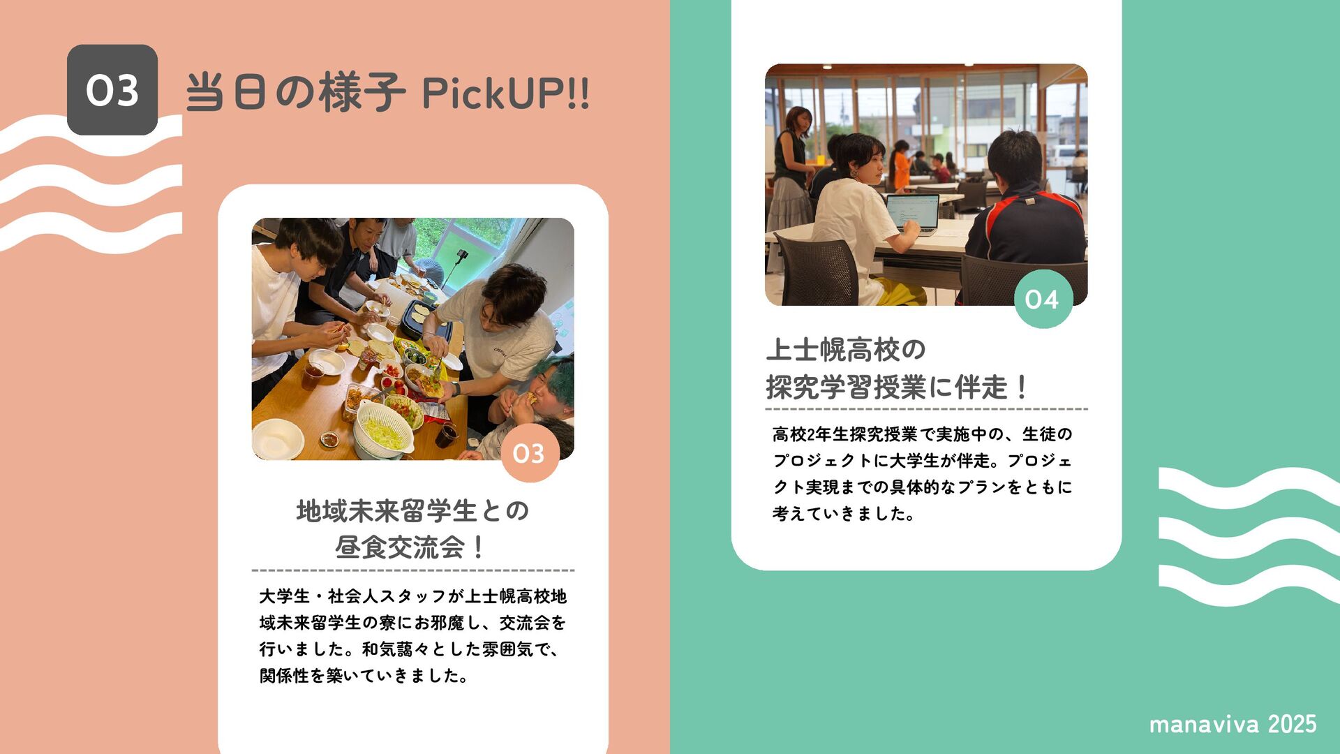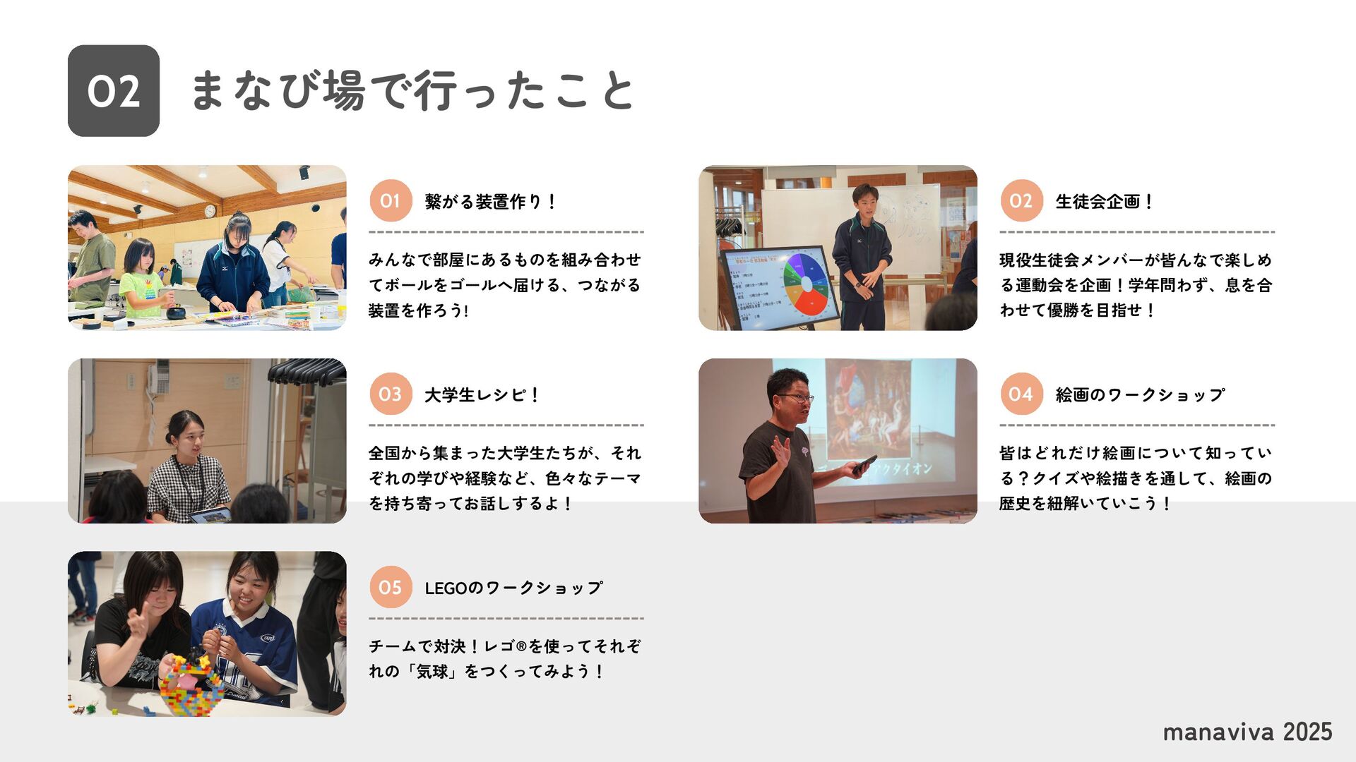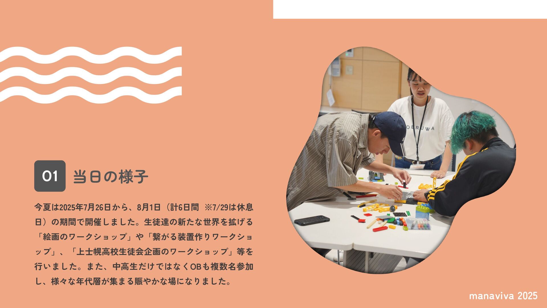 7/26(土) 7/30(水) WS開催 7/27(日) 7/31(木) 7/28(月) 8/1(金) 繋がる装置WS 絵画WS 生徒会企画WS 大学生レシピ 大学生レシピ LEGO®︎WS 高校2年生(名) 高校2年生(名) 中学3年生(名) 中学2年生(名) 中学1年生(名) 小学生(名) 高校1年生(名) 14 7 - - - - 2 2 1 3 3 0 8 5 2 9 11 7 2 4 6 1 1 2 0 5 6 4 0 6 3 31 7 32 7 26 7 26 9 26 9 28 2 2 4 2 2 4 (前回比 +3 名)