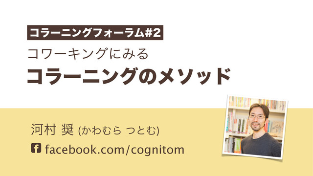 図書館総合展 コラーニングフォーラム#2の私のパートで、「コワーキングに見るコラーニングのメソッド」としてお話しした内容です。 http://2014.libraryfair.jp/node/2088