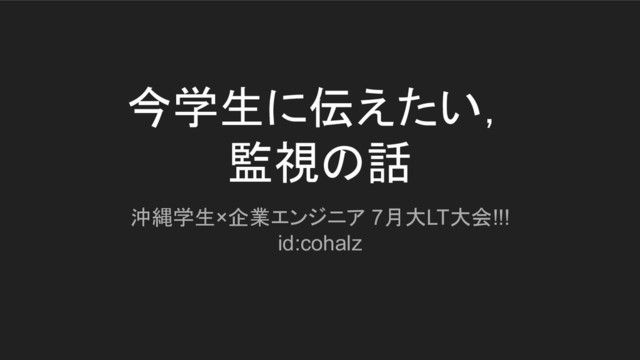 今学生に伝えたい, 監視の話 沖縄学生×企業エンジニア 7月大LT大会!!! id:cohalz