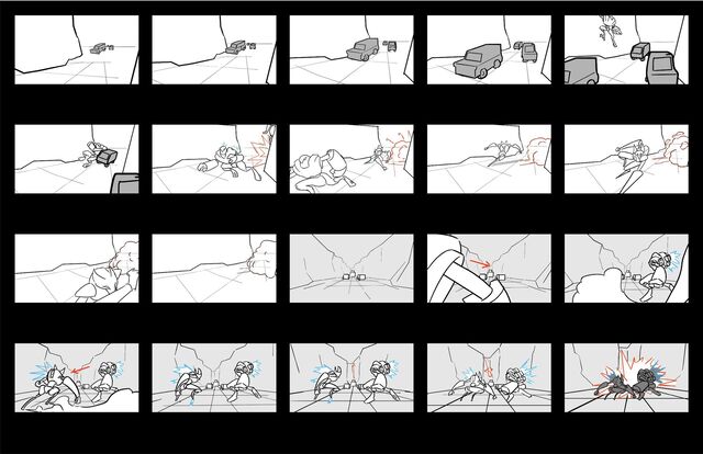 Thumbnails for an action sequence in the short film Sandstorm Steel