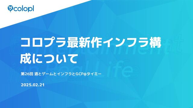 第26回 酒とゲームとインフラとGCP@タイミー コロプラ最新作インフラ構 成について 2025.02.21