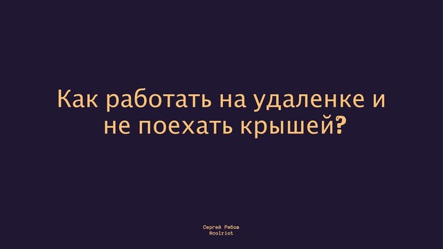 В эти темные времена многие из нас вынуждены работать из дома даже против своего желания. В своем докладе я постараюсь осветить большинство проблем, которые вас поджидают, мы обсудим возможные варианты решения и подготовимся к ближайшим месяцам работы из дома. This is not gonna end soon