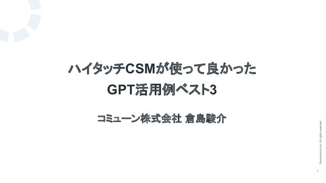 ©commmune Inc. All rights reserved 1 ハイタッチCSMが使って良かった GPT活用例ベスト3 コミューン株式会社 倉島駿介