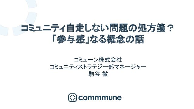 8. © commmune Inc. All rights reserved 34 まとめ • 参与感(参加している感じ)を大事にしよう