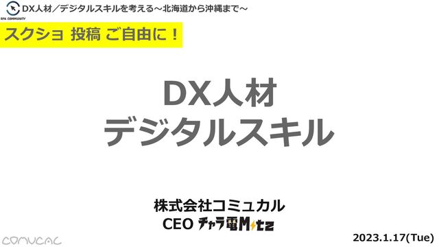 DX人材 デジタルスキル 2023.1.17(Tue) 株式会社コミュカル CEO DX人材/デジタルスキルを考える~北海道から沖縄まで~ スクショ 投稿 ご自由に!
