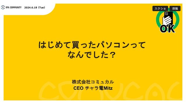 Java ・ JavaScript ・ Python など • IoTやブロックチェーン関連の開発経験 • 年間200以上コミュニティイベントに参加 • 登壇経験 200回以上 ファシリテート 500回以上 • コミュニティイベント運営 600回以上 • エンジニア経験&コミュニティ活動きっかけで起業 数百名から数千名のコミュニティをメインに推進・サポート中 2B、2C、趣味コミュ、社内コミュなど多数運営中 コミュニティ運営勉強会 主催 CMX Connect TOKYO 運営 CLS高知 運営 コミュワン 運営 コミュマネラボ 運営 などなど コミュニティのプロやってます!