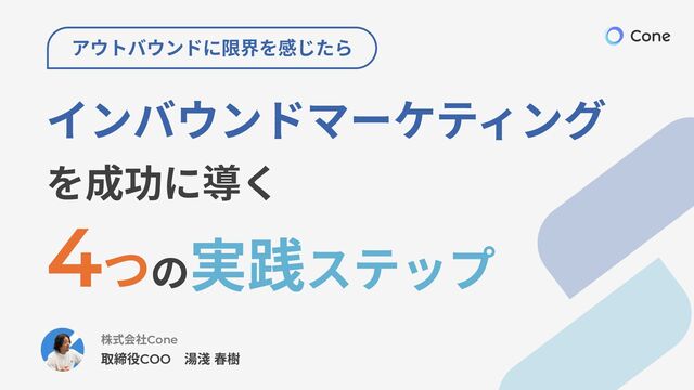 インバウンドマーケティング を成功に導く 株式会社Cone 取締役COO 湯淺 春樹 4つの実践ステップ アウトバウンドに限界を感じたら