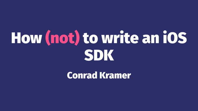 I'll be picking apart what makes an SDK great to work with, and conversely, illustrating some common pitfalls that SDK developers fall into. Everything from the language an SDK is written in, to the build system it uses, to the platforms it supports (hint: all of them) and more. I'll also go over some ways to go that extra mile when building an SDK.
