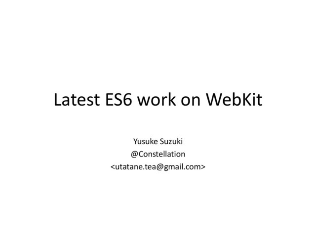 support of `iterator.return()` – Of course, @@iterator is supported • You can easily create the custom iterators • destructuring – Array, Object patterns are already supported – Rest element is just supported (WK) – Destructuring accepts iterators (WK) – Spec conformance becomes higher than Firefox 40