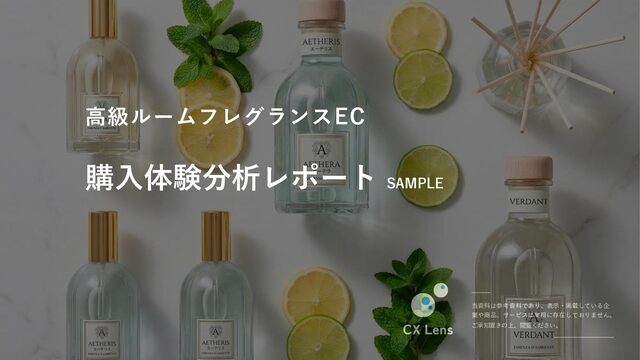 当資料は参考資料であり、表示・掲載している企 業や商品、サービスは実際に存在しておりません。 ご承知置きの上、閲覧ください。 購入体験分析レポート SAMPLE 高級ルームフレグランスEC