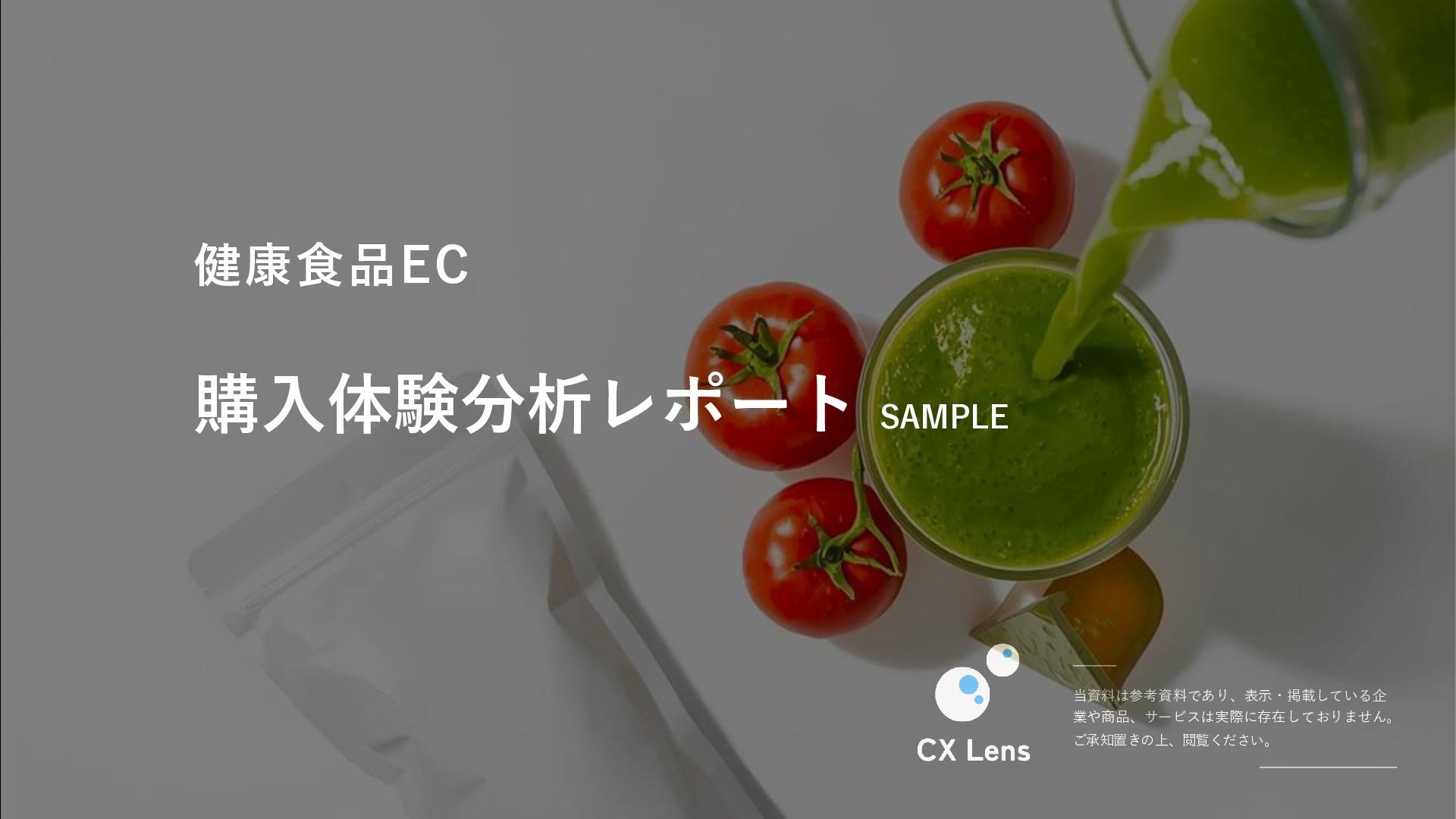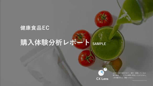 当資料は参考資料であり、表示・掲載している企 業や商品、サービスは実際に存在しておりません。 ご承知置きの上、閲覧ください。 購入体験分析レポート SAMPLE 健康食品EC