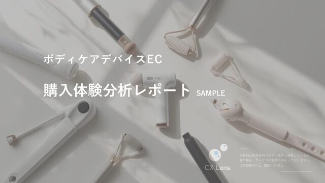 当資料は参考資料であり、表示・掲載している企 業や商品、サービスは実際に存在しておりません。 ご承知置きの上、閲覧ください。 購入体験分析レポート SAMPLE ボディケアデバイスEC