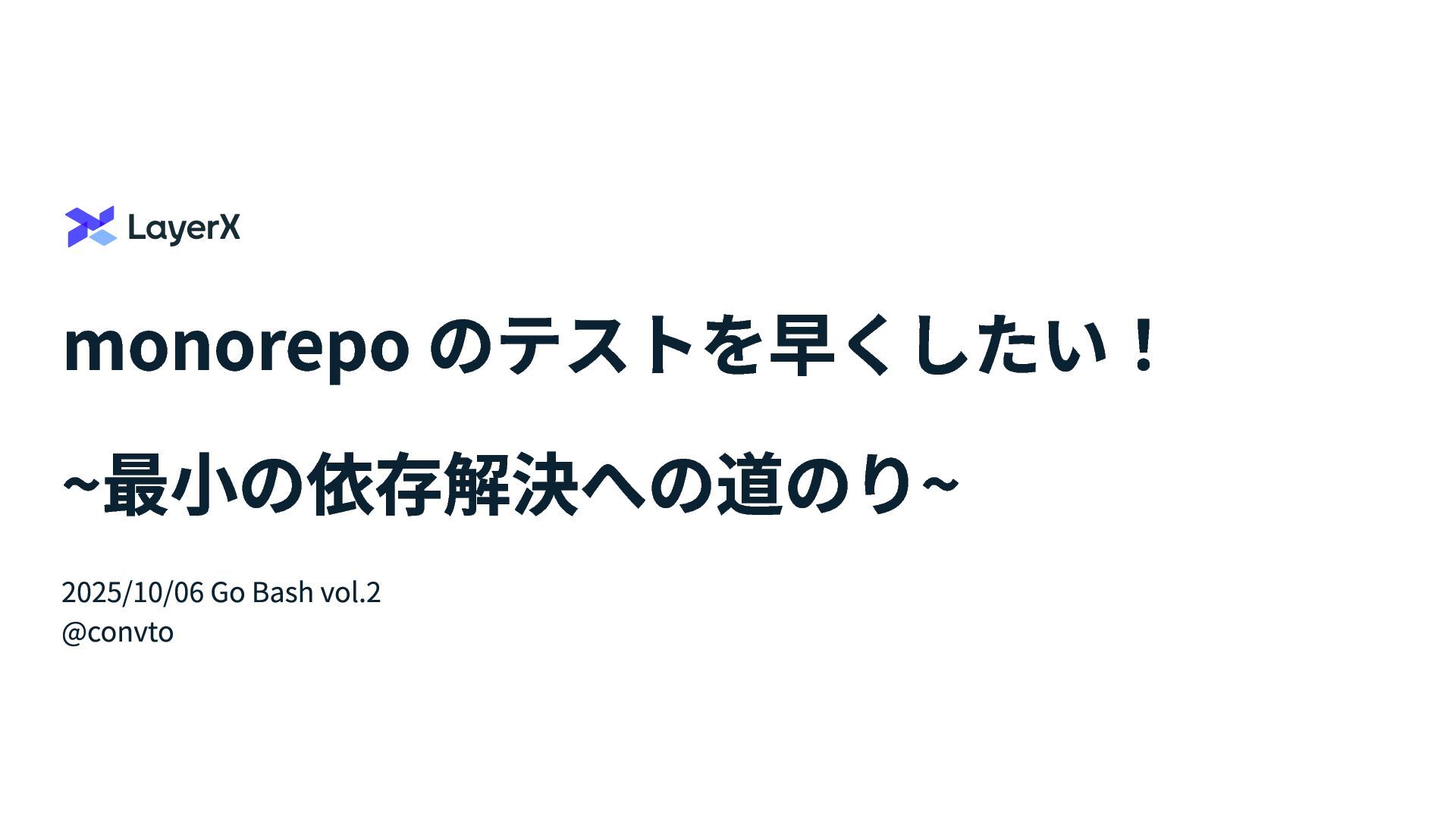 monorepo のテストを早くしたい! ~最小の依存解決への道のり~ 2025/10/06 Go Bash vol.2 @convto