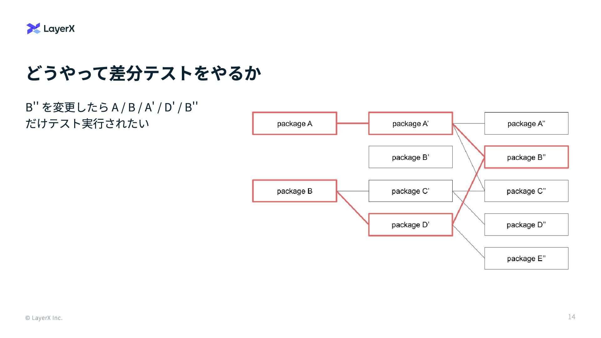 / B'' だけテスト実行されたい © LayerX Inc. 14