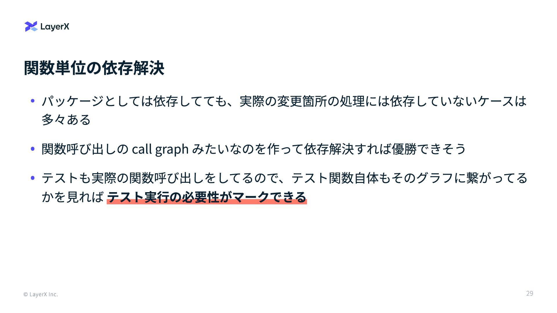 さらに実行対象を絞りたい 関数レベルまでみると実は依存を絞れる! © LayerX Inc. 28