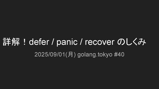 詳解!defer / panic / recover のしくみ 2025/09/01(月) golang.tokyo #40