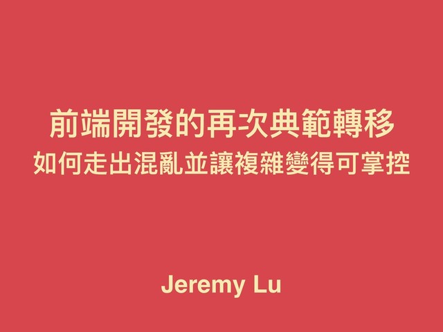 你總好奇為何在學會 react 與元件化思考後,手邊程式卻仍有修不完的臭蟲且難以測試,而專案也總會逐漸變的混亂並失去控制?本場將說明前端開發總是緩慢、易錯與難以控管的根本原因並提出一勞永逸的解決方案,不但能杜絕已知所有弊病並大幅改善開發流程與效率,這是你不可錯過的次世代典範轉移。