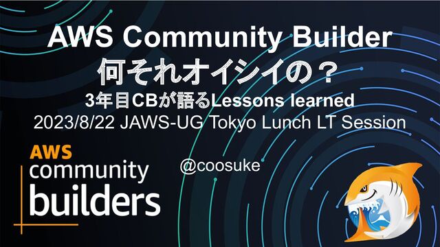 AWS Community Builder 何それオイシイの? 3年目CBが語るLessons learned 2023/8/22 JAWS-UG Tokyo Lunch
