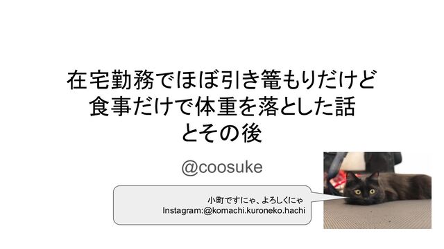 在宅勤務でほぼ引き篭もりだけど 食事だけで体重を落とした話 とその後 @coosuke 小町ですにゃ、よろしくにゃ Instagram:@komachi.kuroneko.hachi