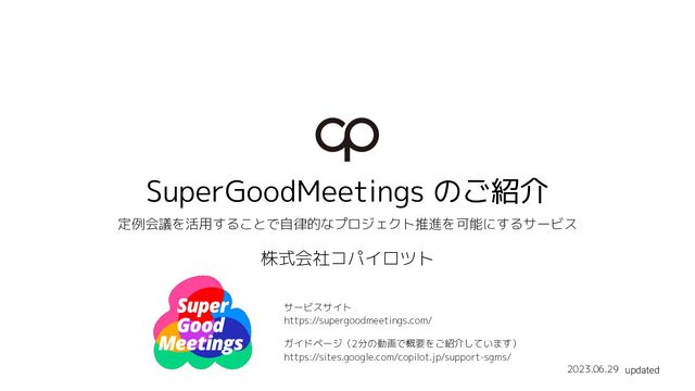 タスク管理 会議でタスクを出やすくし、 メンバー間のタスク認識を揃 えやすくする プロジェクト全体のタスクを 把握して、それぞれのタスク の進捗を管理する Asana / Redmine / Backlog スケジュール管理 プロジェクトごとに定例会議 のスケジュールが一覧できる 個人や組織の全体的なスケ ジュールが一覧できる Microsoft Outlook Google calender ロードマップ管理 全体を俯瞰してチームが達成 したい成果がわかる タスクのガントチャートが引 ける Exel Google Spredsheet 会議情報・ 会議進行管理 会議の議題管理や進行にメン バーが関わりやすくなる (なし) (なし) ビデオ会議機能 (なし) オンラインでビデオ会議を行 う Zoom / Google Meet / Microsoft Teams コミュニケーション (なし) チャット・メールでの交流 や、ファイル共有を行う Slack / Microsoft Teams