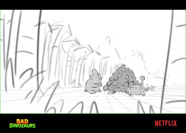 Start of an episode of Netflix´s Bad Dinosaurs, that I boarded in 2023 at Snafu Pictures.