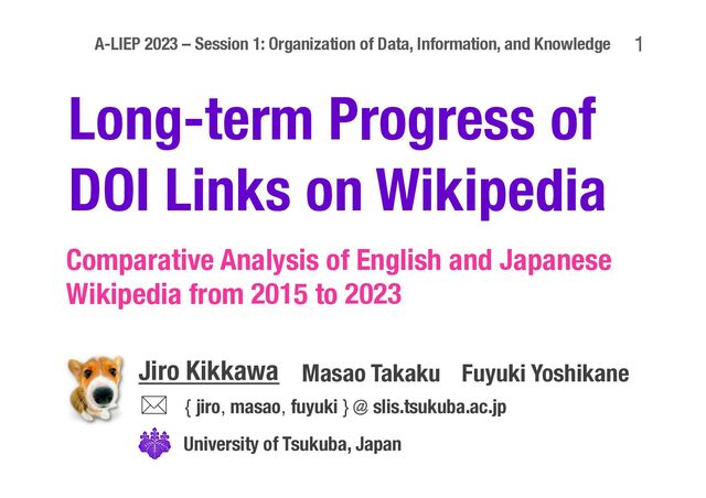 Our presentation slide at A-LIEP2023 (https://a-liep.org/), Session 1: Organization of Data, Information, and Knowledge on 5th December 2023.