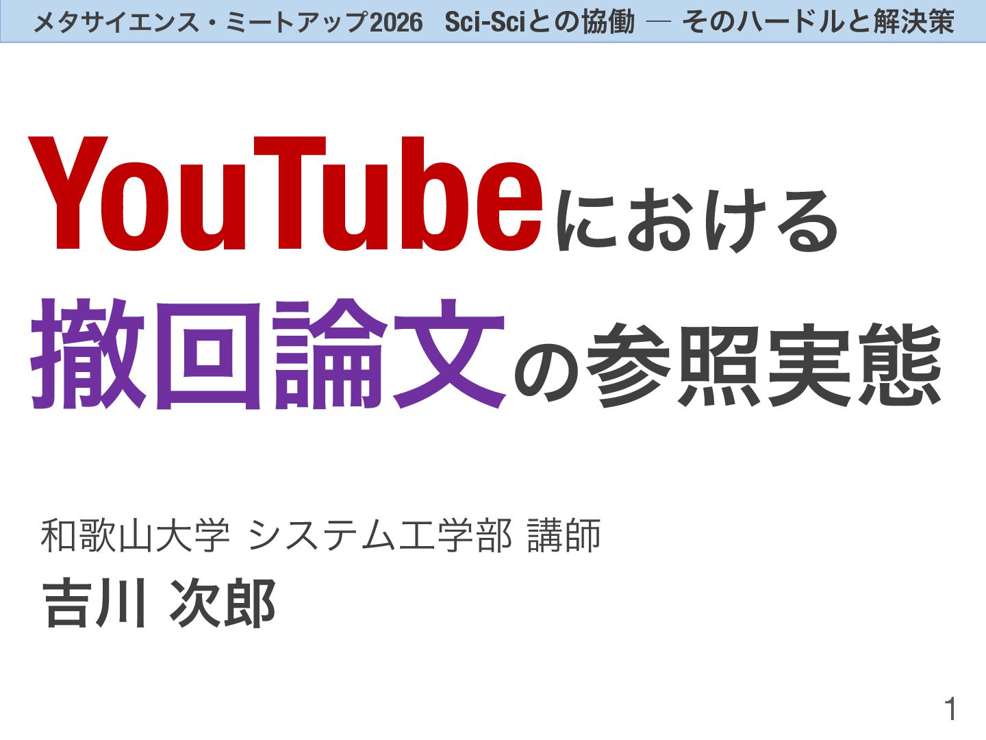 YouTubeにおける撤回論文の参照実態 / metascience-meetup2026