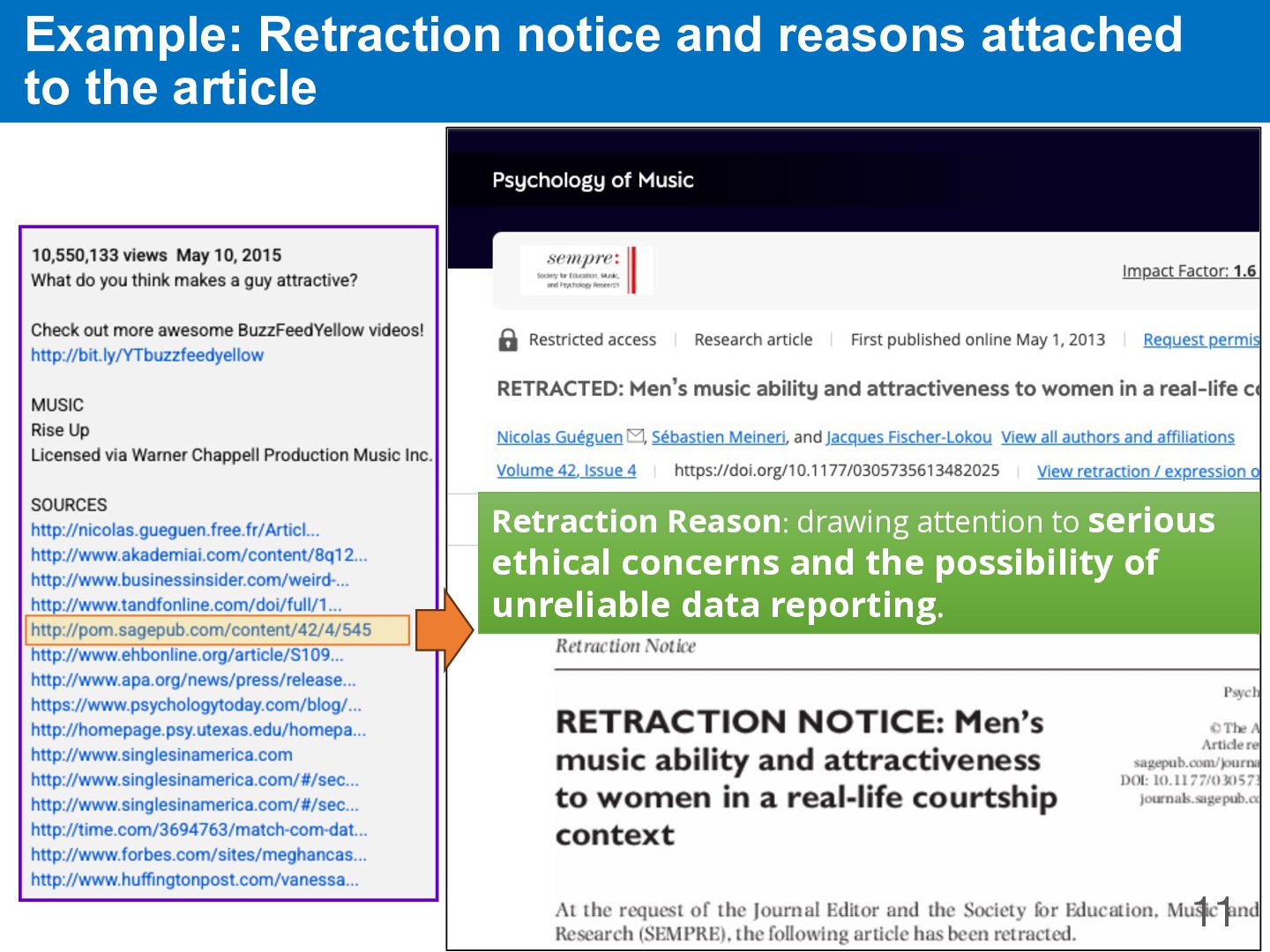 8. Example: Retraction notice and reasons attached to the article Retraction